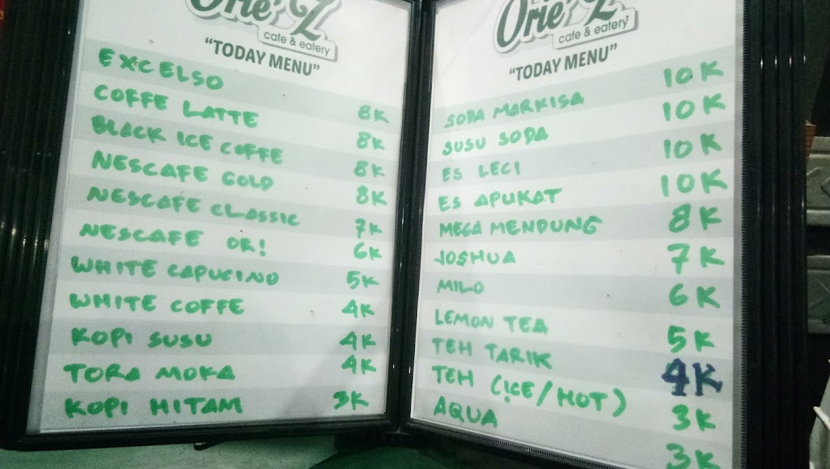 The menu boasts an ample range of choices at fair prices, which harmonize well with the welcoming atmosphere and attentive service. Whether you’re craving light snacks or hearty meals, Orie'z serves up dishes that satisfy both taste buds and budgets. Although some customers have noted cleanliness concerns, the overall experience remains positive for those seeking a comfortable place to unwind or work on projects. The spacious parking and available facilities add to the appeal, making Orie'z a practical and flavorful stop in the heart of Jawa Timur.